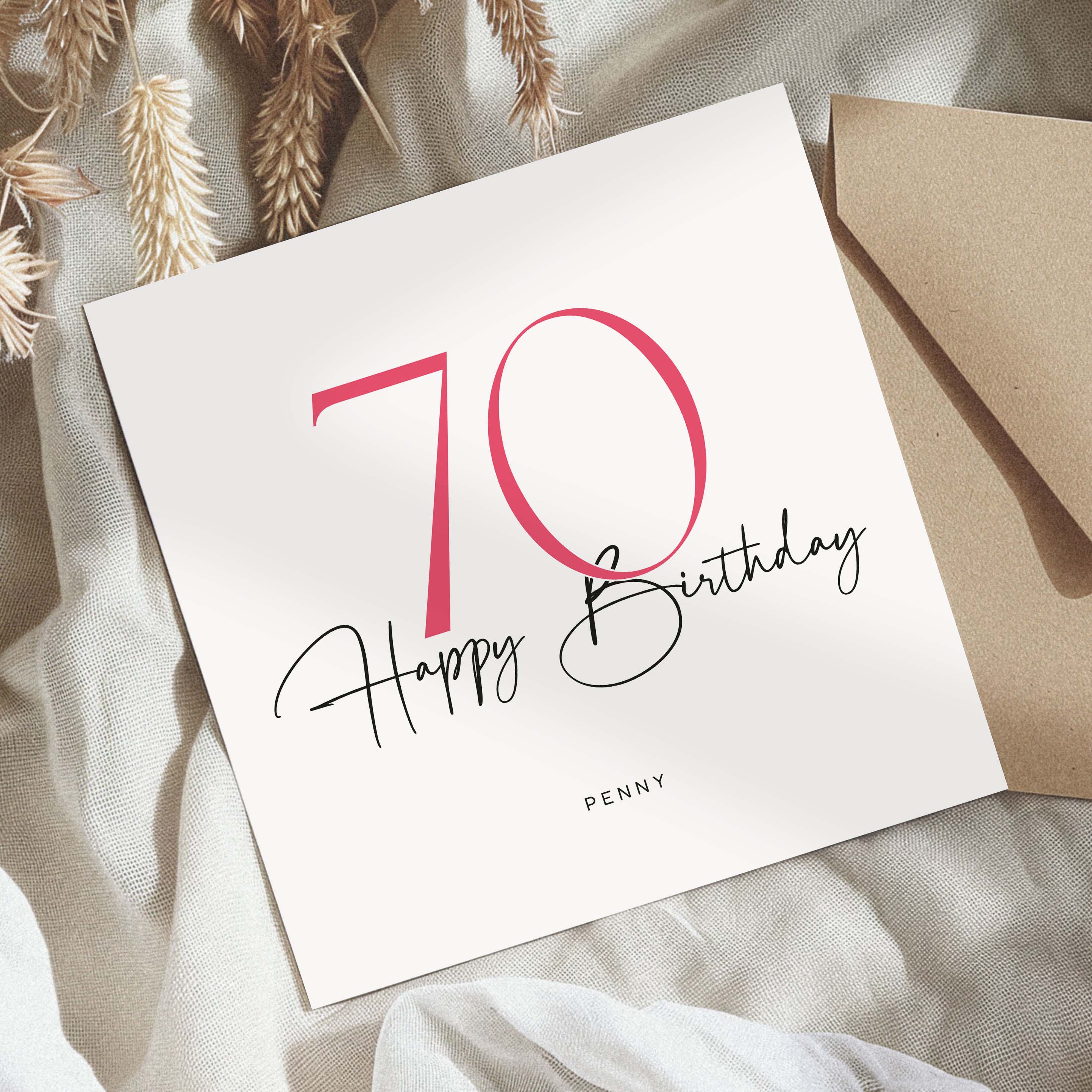 Mark a special 70th birthday with our exquisite 70th Birthday Cards. Featuring unique designs and high-quality materials, these cards are perfect for expressing your warmest wishes. Add a personal touch by customising your card for a memorable gift. Shop now and make their 70th birthday truly remarkable with a thoughtful, personalised card!